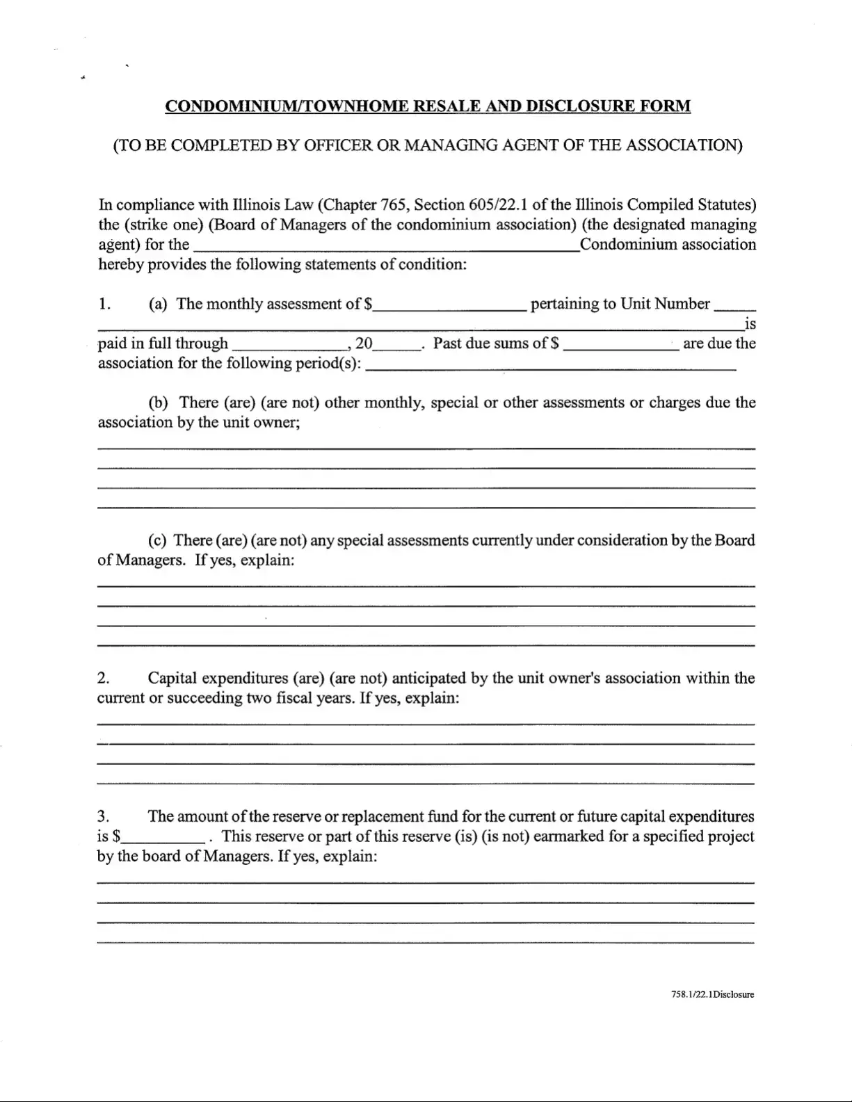 Completing the Act 221 Disclosure form is a crucial step in ensuring transparency and compliance with Illinois law. After filling out this form, it will be submitted to the appropriate parties to provide them with essential information regarding the condominium or townhome association. Follow these steps carefully to ensure accuracy and completeness.