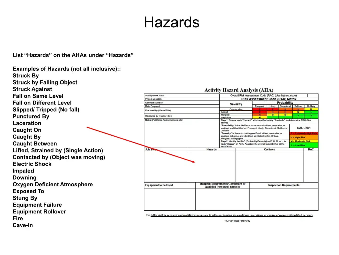 The AHA EM 385 form, or Activity Hazard Analysis, is a critical tool used in construction and other industries to identify potential hazards associated with specific work tasks. This form helps in assessing risks and implementing safety controls to minimize accidents. By clearly defining activities, hazards, and control measures, the AHA EM 385 form ensures that everyone involved understands the risks and how to mitigate them. It serves as a living document that must be updated as site conditions or personnel change, promoting ongoing safety awareness.