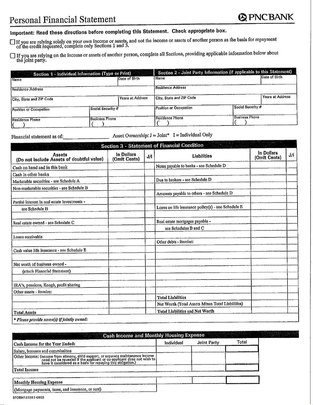 - Obtain the PNC Bank Statement form.